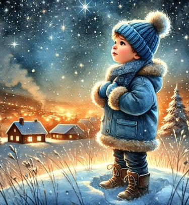 Nel piccolo villaggio di Monteneve, viveva un bambino di nome Nilo, che amava guardare il cielo d’inverno.